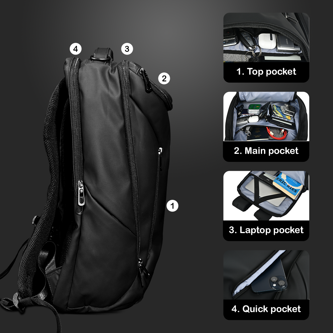 Every pocket has a purpose. From your laptop to daily essentials, the VenturesPack is intelligently organized for how you move. With dedicated compartments for your tech, quick-access zones, and deep storage, it keeps your day flowing seamlessly—whether you're on the go or off the grid.